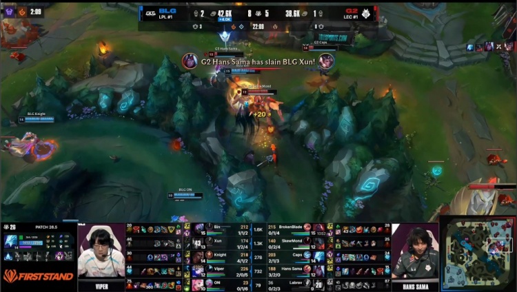 直播吧3月22日讯 2026全球先锋赛决赛,由BLG对阵G2!