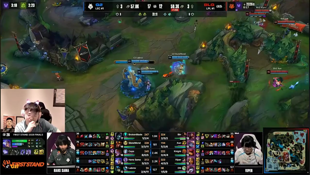 直播吧3月22日讯 全球先锋赛决赛G2对阵BLG,Uzi直播解说比赛;