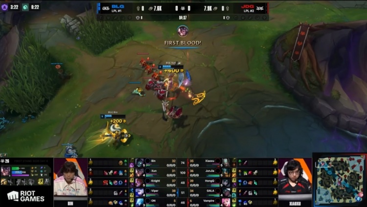 第一局:🎮轻松!Bin大哥开抽小徐 Xun梦魇带球过人 BLG气势如虹赢首局