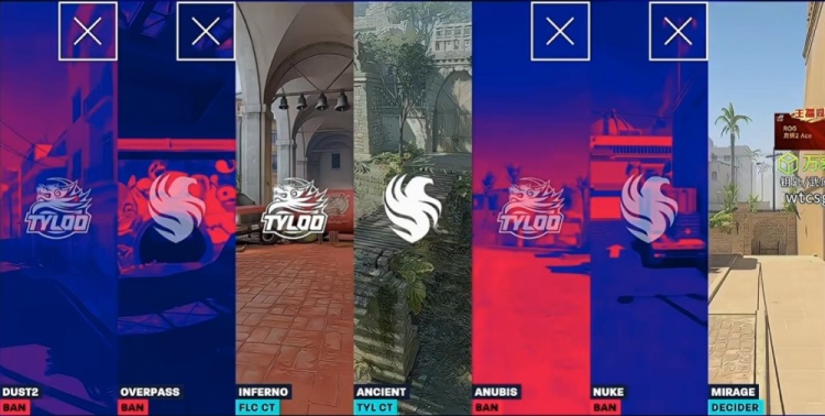 图三选图 Mirage荒漠迷城(TYLOO选择CT方 / Falcons则是T方开局)