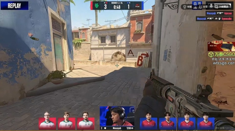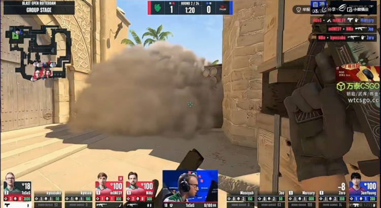 第一局NiKo前顶中路和JamYoung一换一,但是kyousuke马路中间开转,直接四杀粉碎了TYLOO的翻盘希望!1-12!
