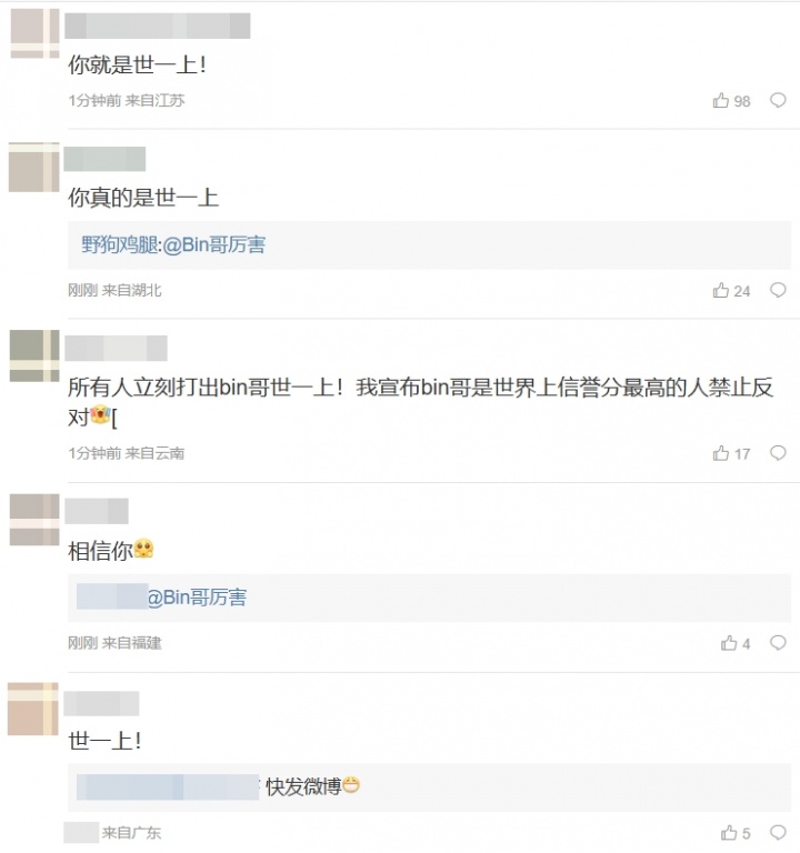 >风评反转!粉丝纷纷认可Bin:明天太遥远了,世一上就是现在!