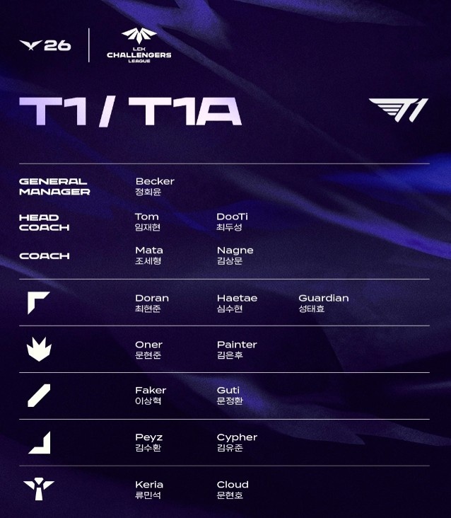 针对 2026 LCK 常规赛开赛前T1的英雄联盟战队阵容出现的变动,现向各位粉丝公告如下: