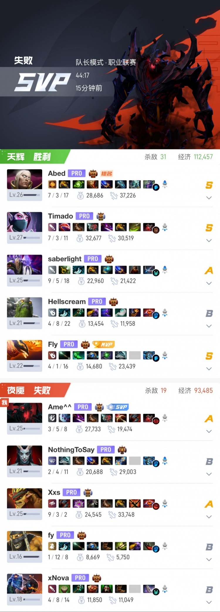 天辉方VP:Fly凤凰、SaberLight黑暗贤者、Hellscream小小、Abed凯尔、Timado圣堂刺客