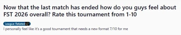 既然最后一场比赛已经结束了,大家对2026年先锋赛整体感觉如何?给这届赛事打个分吧(1-10分)