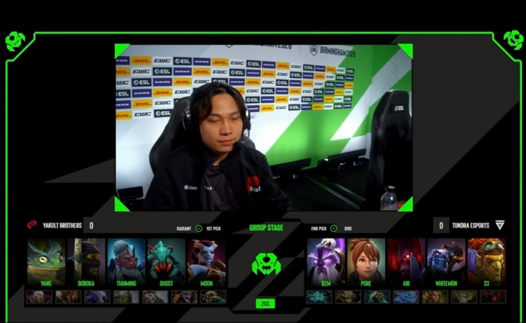 直播吧3月24日讯 ESL ONE伯明翰小组赛第三天,本轮中国队Yakult Brothers对上Tundra战队,由于前面输了一个0-2,本轮若Yakult Brothers无法拿到一个胜局将与晋级无缘。