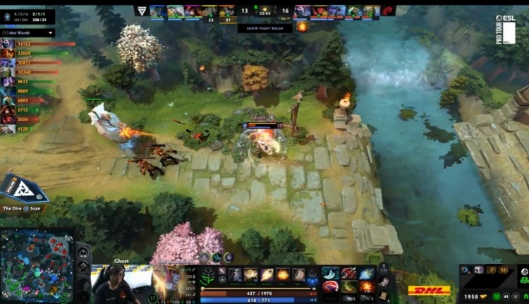 10分钟,Tundra再度将上路作为突破口,三核齐聚冲脸击杀朗戈后推进,这波过后,Tundra整体经济领先5K,正面核心经济领跑,由于Moon痛苦女王多次大招只中1人或者空大,勉强跟上第一梯队节奏的Ghost编织者压力巨大。