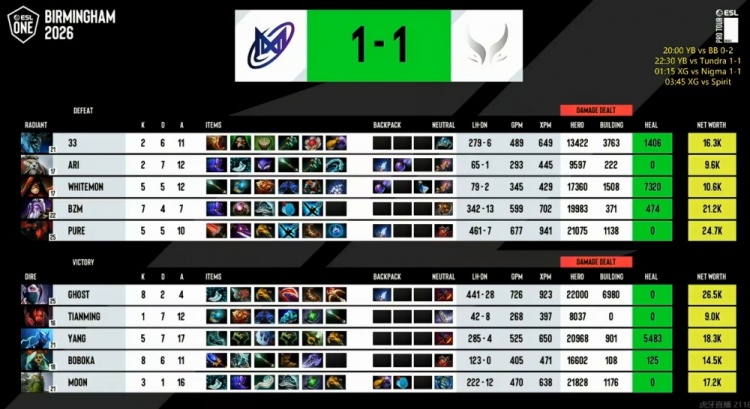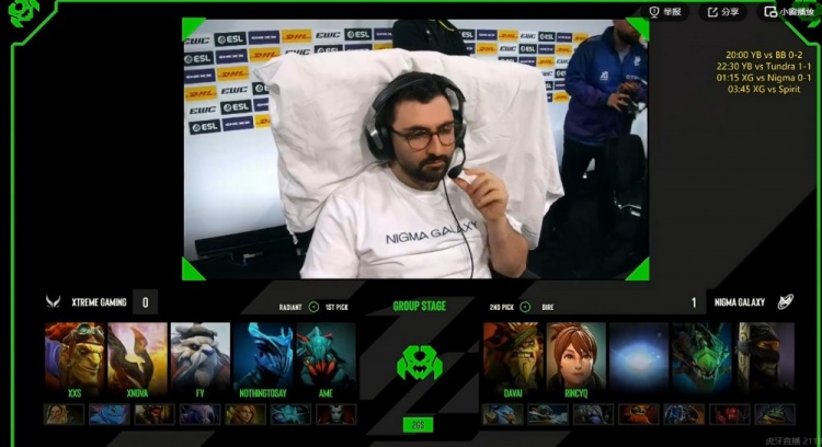直播吧3月25日讯 ESL伯明翰来到第三日,中国战队XG今天的首个对手是Nigma!