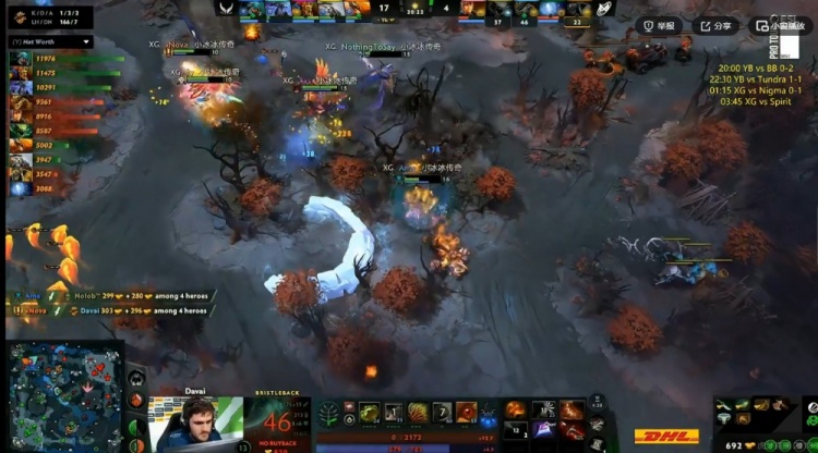 32分钟xNova凤凰高地蛋直接开战场,正面Fy海民先手配合队友轻松打出0换3,Nigma交出三买活但是根本留不住人,XG回头再拿魔晶!33K经济差了!回头XG卷土重来,rincyq玛西进场就吃蝙蝠拉再一次被秒!XG最终和Nigma战平各取一分!