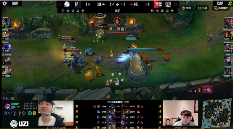 直播吧3月26日讯 2026年UZI杯今天继续,今天第二场是Uzi自己带队的YYDS将要对阵Ning带队的OP!