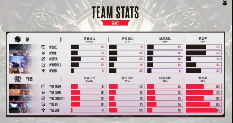 OP:上单Juice,打野Ning,中路Cryin,下路xiaoyueji,辅助Wink