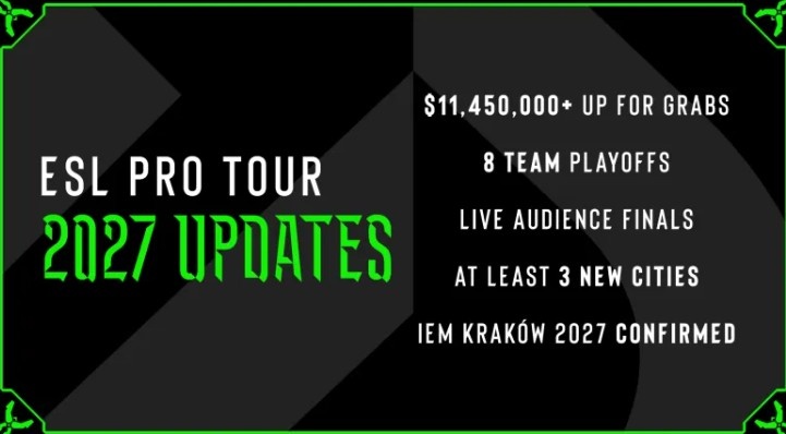 从已确认的IEM克拉科夫2027开始,这意味着将比ESL顶级赛事通常采用的败者组决赛和胜者组种子排位赛多出两场季后赛比赛,不过进一步的赛制细节尚未公布。