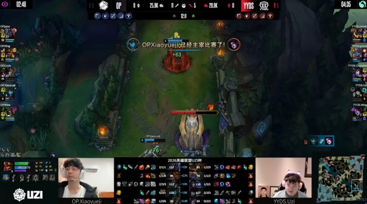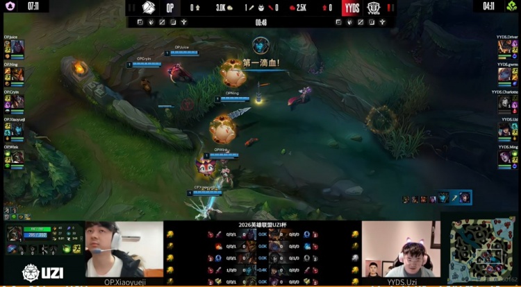 直播吧3月26日讯 2026年UZI杯今天继续,今天第二场是Uzi自己带队的YYDS将要对阵Ning带队的OP!
