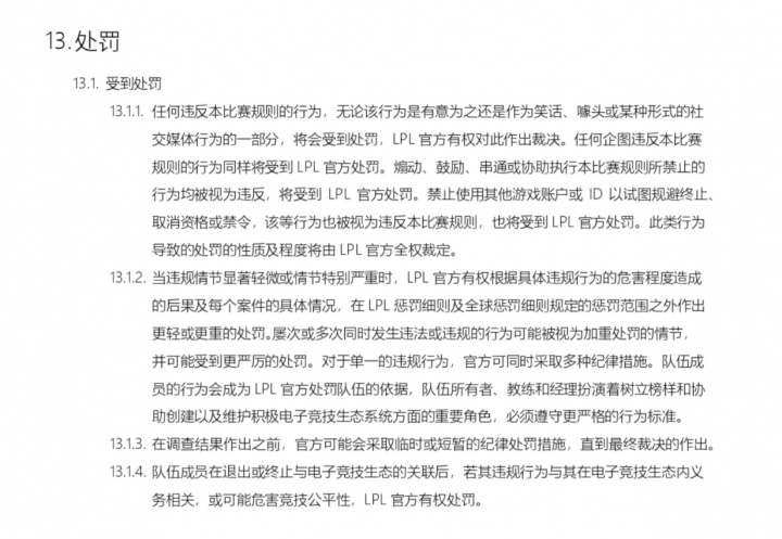 以下为LPL公布的相关规则,官方拥有对假赛选手的惩戒裁量权,将按照具体违规行为的危害程度/造成的后果,在LPL惩罚细则及全球惩罚细则规则的惩罚范围之外做出更轻或更重的处罚。同时,对于屡次或多次同时发生违法/违规的行为可能被事做加重处罚的情节,并可能受到更严厉的处罚。
