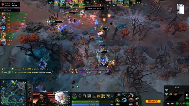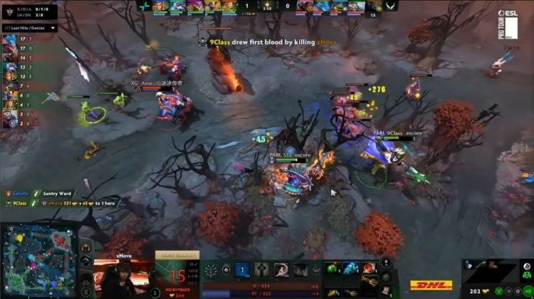 【20:47】森哥自家野区被抓,9class拉比克扔satanic大圣近身吃掉森哥人头。PV中路推进,森哥复活滚进人群再送一个,noone滚滚带队冲锋击杀NTS与X哥,XG直接敲出GG,PV先下一城。