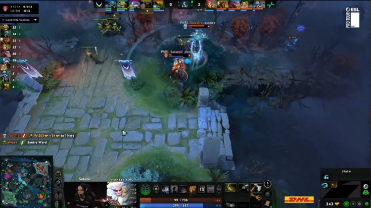 【13:43】森哥拉比克河道被noone滚滚撞飞送SSS兽王人头,随后Dukalis巫妖单人隐身符去上抓掉X哥大鱼,Dukalis再拿一个人头。