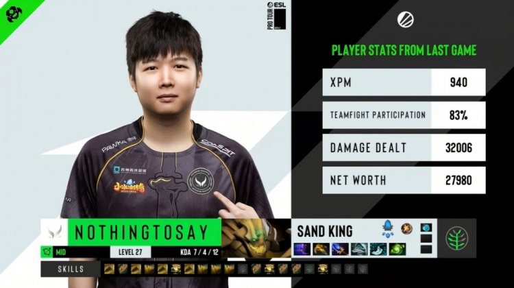 后续noone滚滚上路没能抓到哥哥蚂蚁,SSS兽王省技能导致没能击杀NTS沙王,XG反打2换4拉平经济劣势,随后X哥大鱼控住SSS兽王配合NTS再杀Dukalis与No[o]ne,XG打出0换4经济领先5k。河道团战X哥大鱼护盾符加持爆轰双杀,xNova剧毒补掉Satanic大人头,XG打出0换4推掉PV两路兵营后强推PV基地得手,PV敲出GG,XG扳回一城。