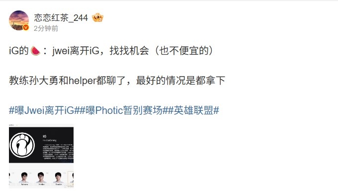 iG的🍉:jwei离开iG,找找机会(也不便宜的)