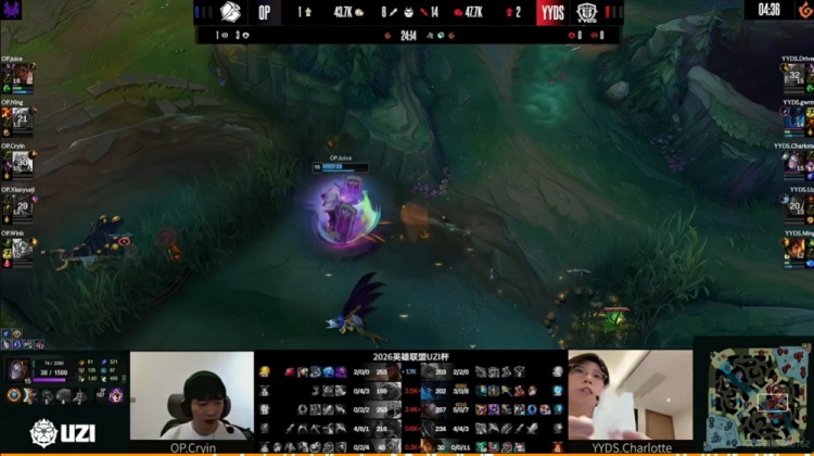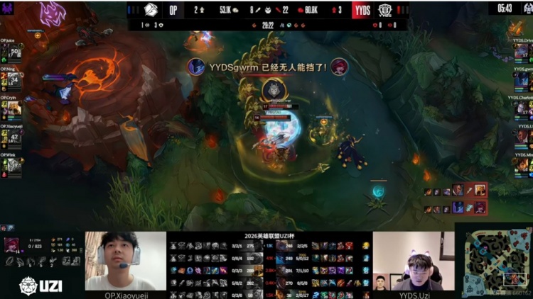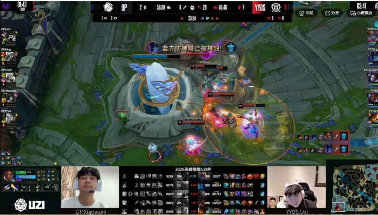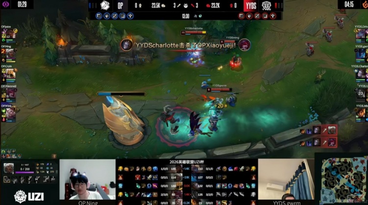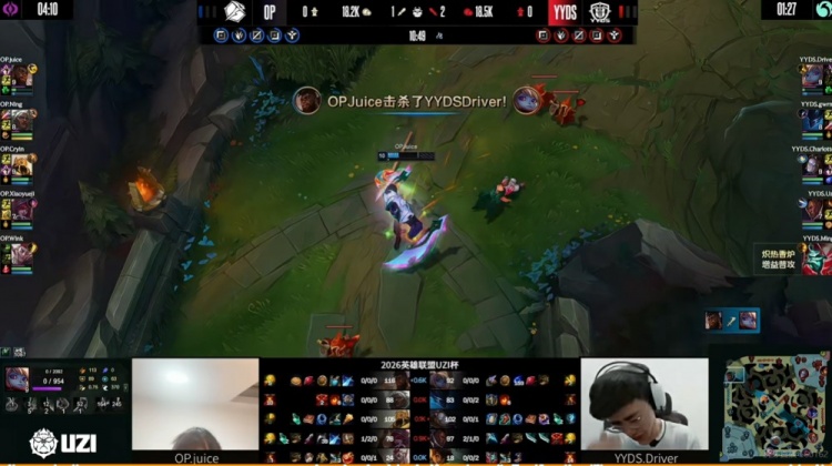 直播吧3月29日讯 2026年UZI杯今天来到淘汰赛阶段,今天的比赛是胜者组第一轮,第二场是Ning带队的OP对阵UZI带队的YYDS!