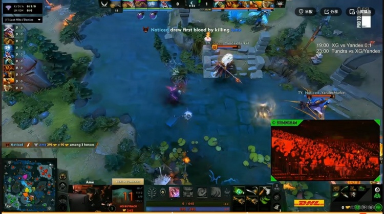 【0分钟】Yandex三人下路赏金符点逮捕了Ame虚空!一血给到了Noticed蝙蝠!