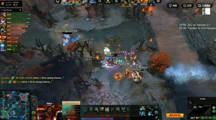 【28分钟】河道符大战,NTS滚滚借助视野直接先手配合队友又一次秒掉了watson奶绿!XG轻松打出0换3,拆掉Yandex中路高地!经济差来到14K了!