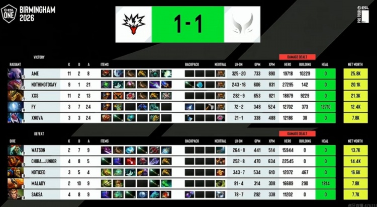 中期XG连续带盾+魔晶,Fy小精灵关键团配合Xxs钢背兽莲花救下NTS滚滚,这波团战获胜之后XG开始扫图gank拉开经济差!Ame虚空更是罩大对位单杀watson奶绿!Yandex一度在传送门处找到团战获胜的希望,但是三大哥互拼XG依靠双减甲完成团灭!随后再次带盾!高地团巨大的装备差下XG直接打碎凤凰蛋之后随便打!Ame虚空无限超神!XG连续两次团灭Yandex扳平了比分!