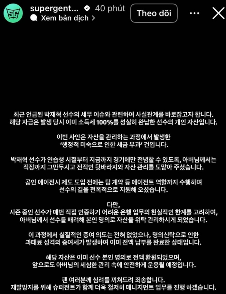 最近就朴载赫选手被曝出的税务问题及相关内容,我们特此进行事实说明。