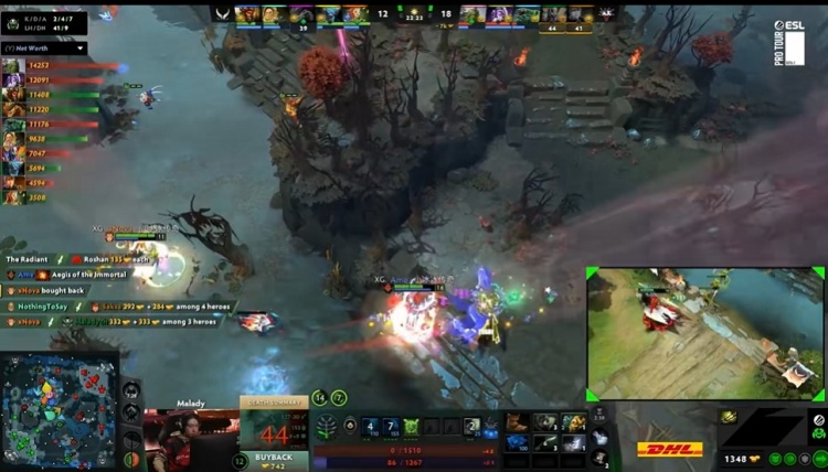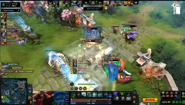 【31分钟】关键的三角区肉山团,Ame兽王入场没有开BKB被Noticed潮汐大招顶起,残血开出BKB的兽王被watson小小过来两拳带走后,正面缺少输出的XG被各个击破,潮汐双杀,将XG打了一波四人阵亡。Yandex赢团控下二代肉山,小小带盾。