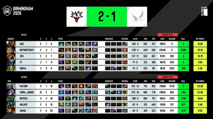 决胜局XG一套中期强势阵容前期优势后选择上头动手潮汐,结果被极速符紫猫过来秀一脸,紫猫四杀让XG的优势送了回去,等watson小小出到大隐刀,能顶正面的xxs钢背兽也被针对,好不容易稳住局势,又轮到兽王接连两波不开BKB入场秒被控导致团战崩盘,Yandex带盾上高,兽王买活都打不死残血小小,反而是兽王再次倒地,钢背兽也回不了高地,双核倒地不能买活,XG打出GG,XG遗憾1-2Yandex止步季军。