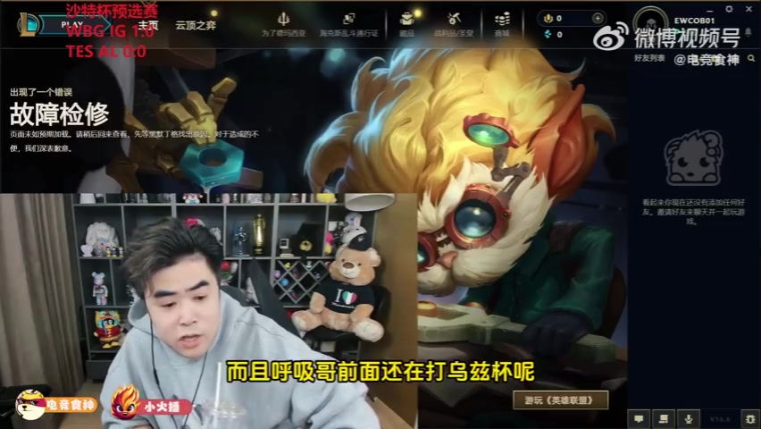 直播吧3月30日讯 朱开直播看EWC预选赛IG对阵WBG,同时谈到IG第二赛段的人员调整情况;