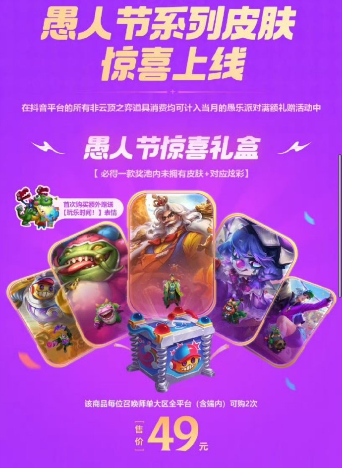 愚人节皮肤将会有盲盒,宝典以及一些电商平台活动