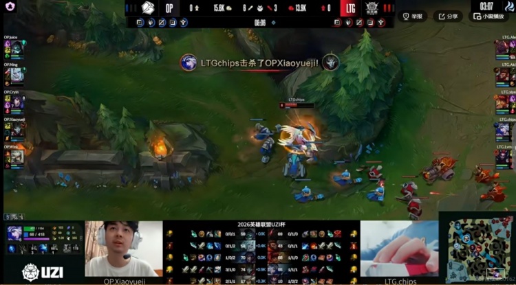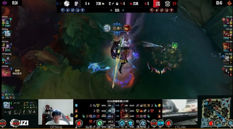 直播吧3月31日讯 2026年UZI杯继续淘汰赛阶段,今天首场比赛是败者组,Ale带队的LTG对阵Ning带队的OP!