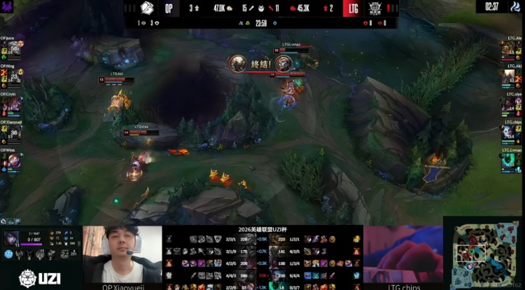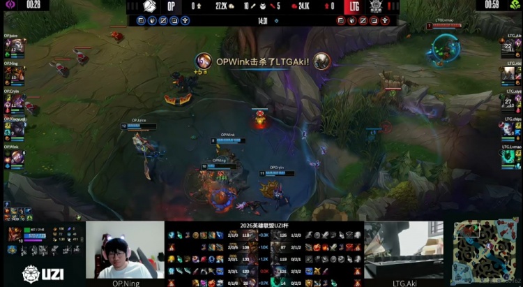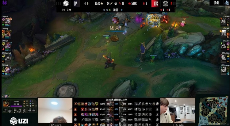直播吧3月31日讯 2026年UZI杯继续淘汰赛阶段,今天首场比赛是败者组,Ale带队的LTG对阵Ning带队的OP!