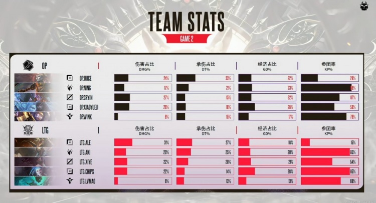 26分钟LTG连续给机会,OP打出1换3之后拿下关键的听牌龙!30分钟中路AKi潘森绕后W想找xiaoyueji厄斐琉斯但是队友跟不上直接被融了!xiye阿卡丽二段大招换掉厄斐琉斯但是自己也活不下来啊!OP打出1换5团灭LTG,一波扳平了比分!