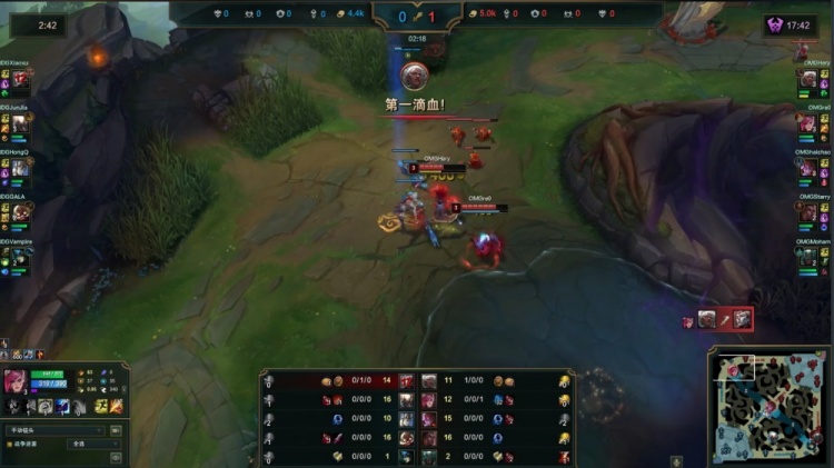 【16:09】先锋团,Junjia潘森跳大开团抢掉先锋,徐神亚恒终结Starry梅尔,但Moham派克斩两人,OMG打出1换2,经济领先3k。