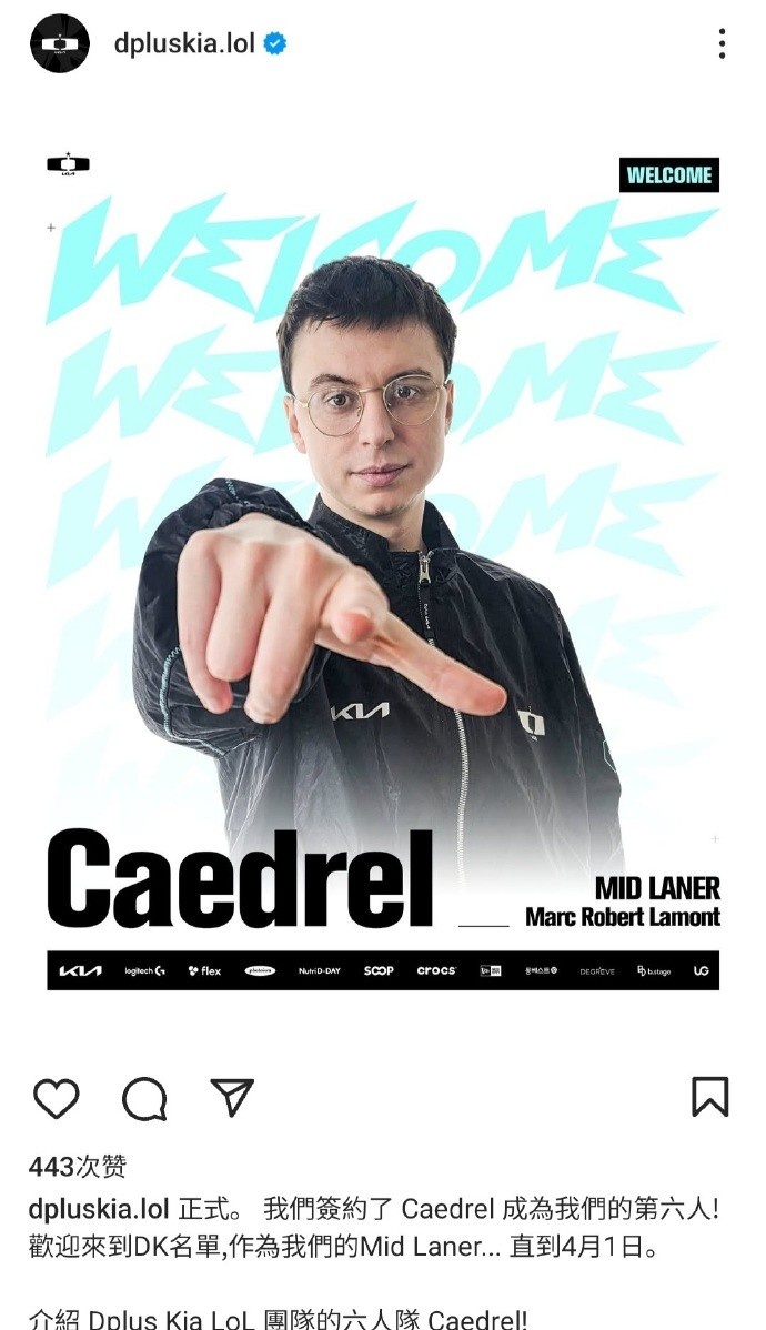 >愚人节活动之直播之王中单!DK官宣:Caedrel作为中单加入!