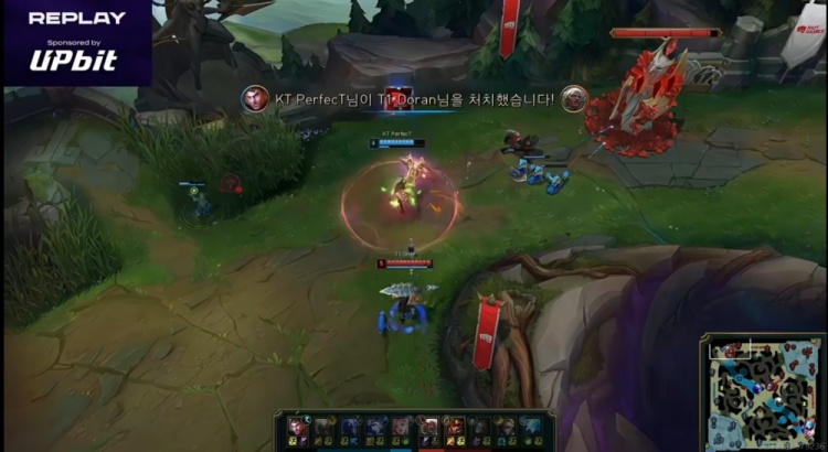 【4:45】上路Doran安蓓萨想勾引结果还没等Oner皇子到,自己就被PerfecT杰斯直接对位单杀!送出一血!