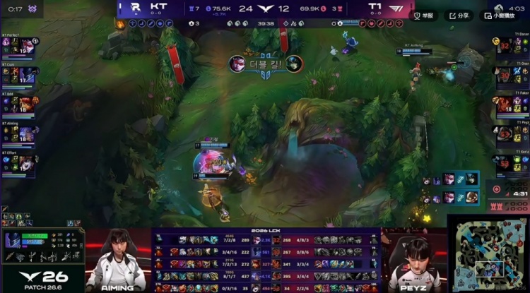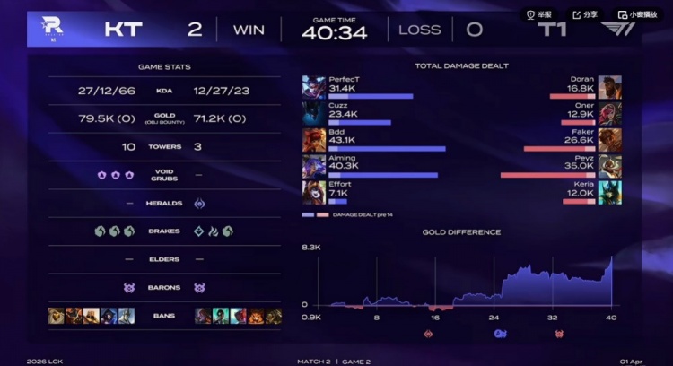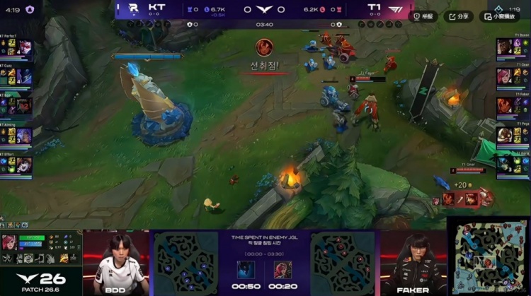 第一局:🎮12-0!Keria冰鸟毫无存在感 T1名宿Effort上场助力KT首局获胜