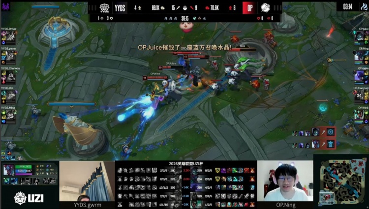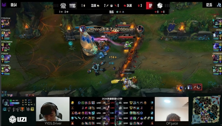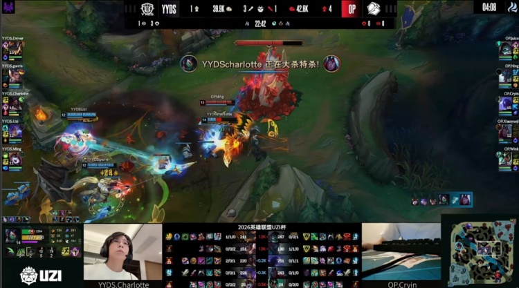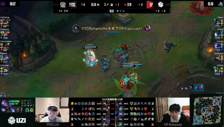 直播吧4月2日讯 UZI杯败者组决赛,由UZI率领的YYDS对阵宁王领衔的OP!