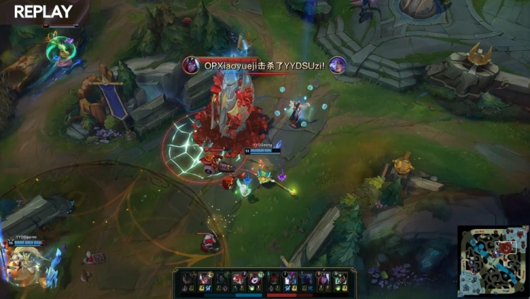 【21:42】Uzi队吃掉小龙,中路团战,gwrm赵信捅飞xiaoyueji配合ming璐璐开大将其留住,Charlotte阿卡丽再杀xiaoyueji,Uzi队经济落后2k。