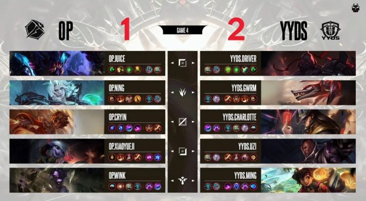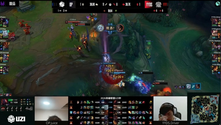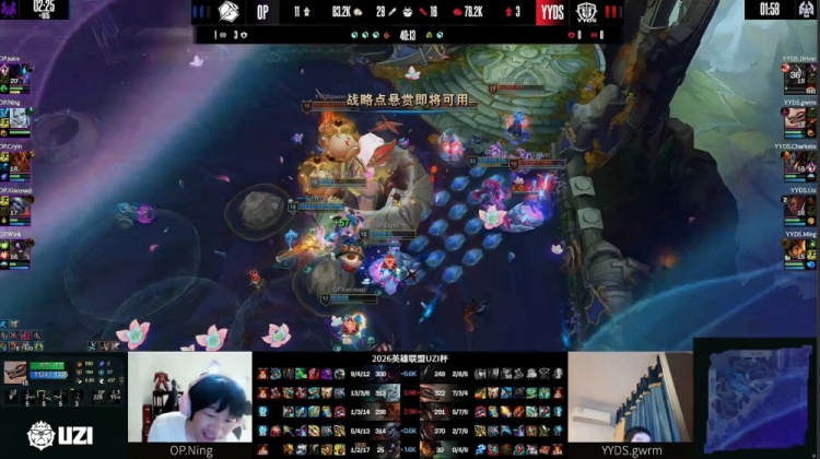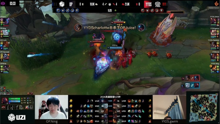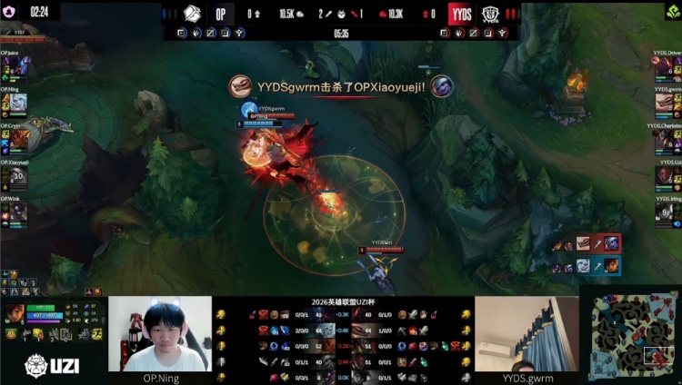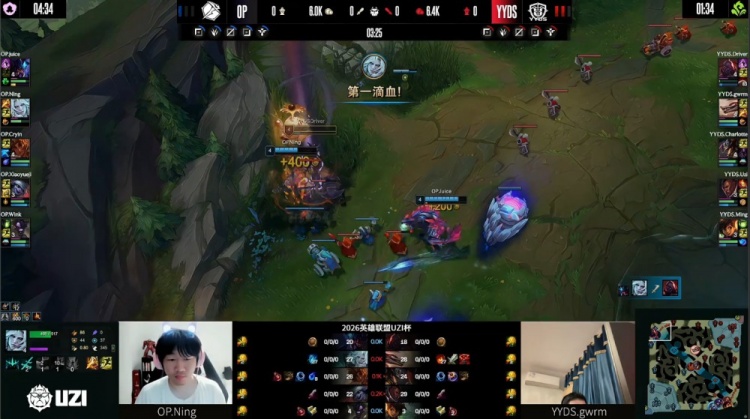 直播吧4月2日讯 UZI杯败者组决赛,由UZI率领的YYDS对阵宁王领衔的OP!