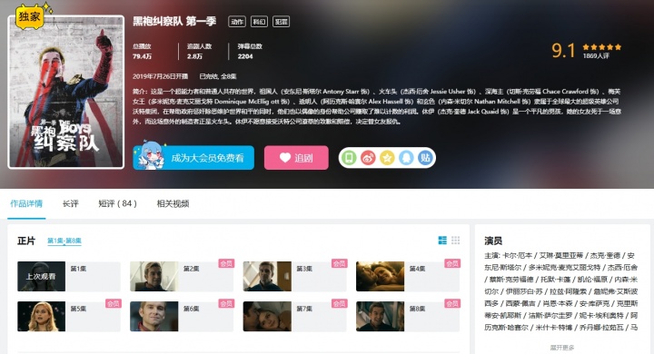 直播吧4月3日讯 今日,《黑袍纠察队》第一季全8集已在B站正式上线开播。截至发稿,该剧集已在B站收获79.4万播放,2.8万人追剧,2204条弹幕,1844人打出了9.1的高份评价。