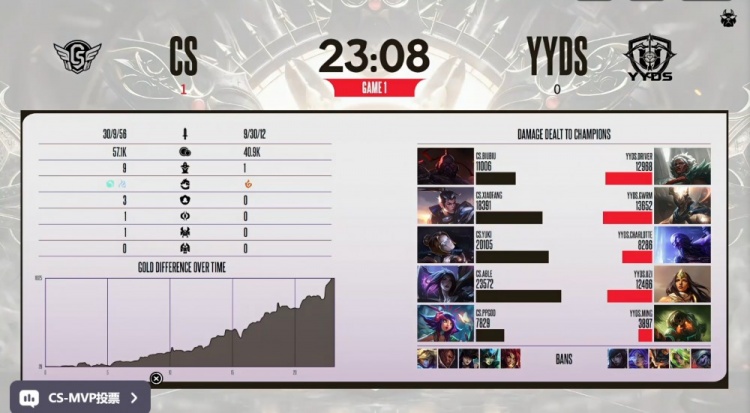 最终Able队轻松拿到大龙经济领先1w2k,一波推平Uzi队基地先下一城。