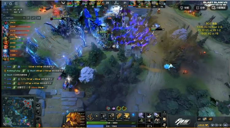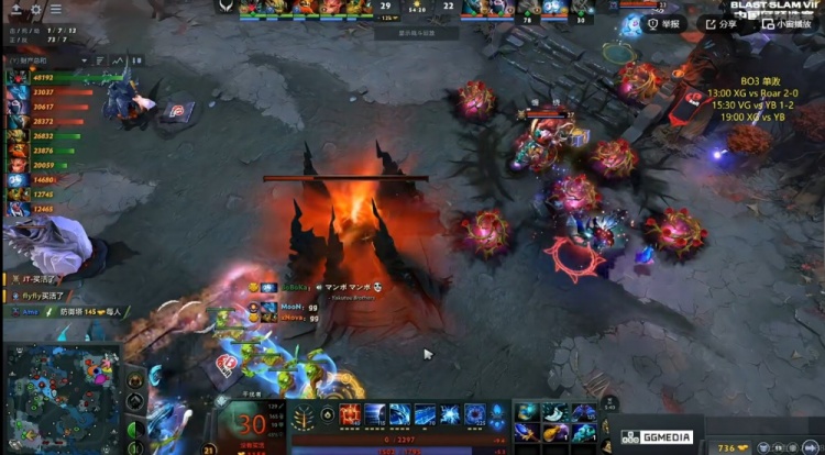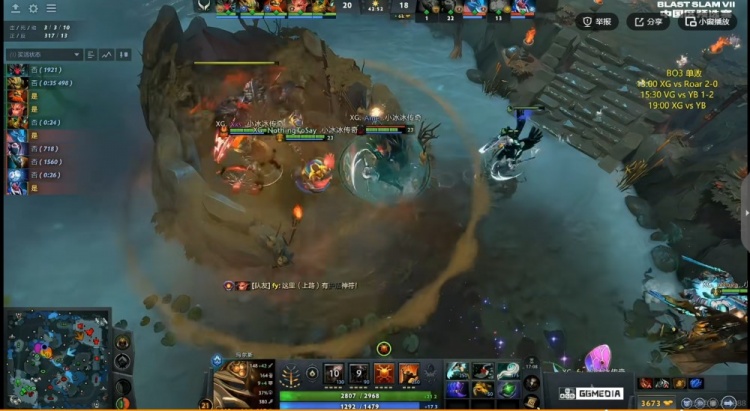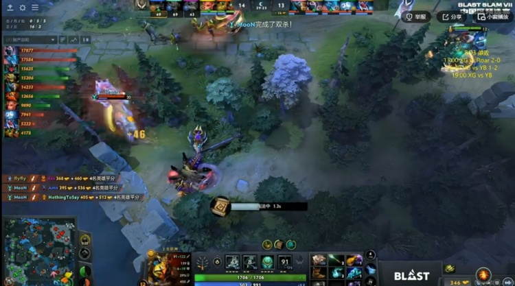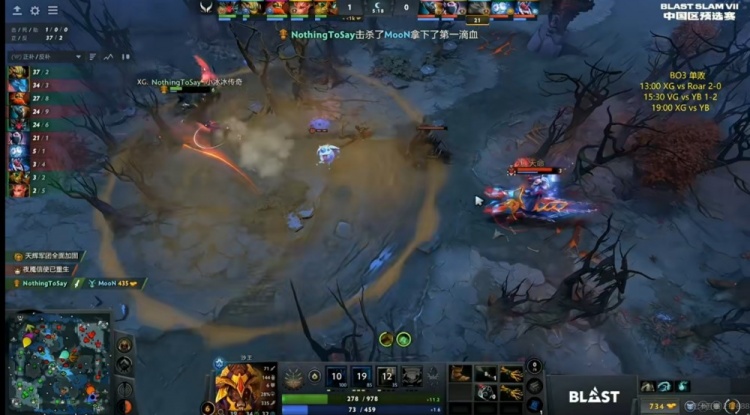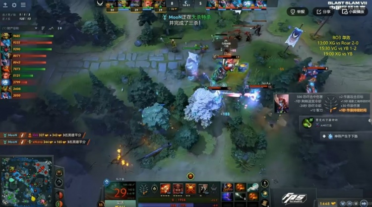 【20分钟】XG拿下魔晶!YB则是抱团拿下一代肉山!MooN拉席克带盾!随后中路XG强开JT猛犸但是JT开出BKB反手拱回NTS沙王配合队友将他终结!两边经济差1K不到了!