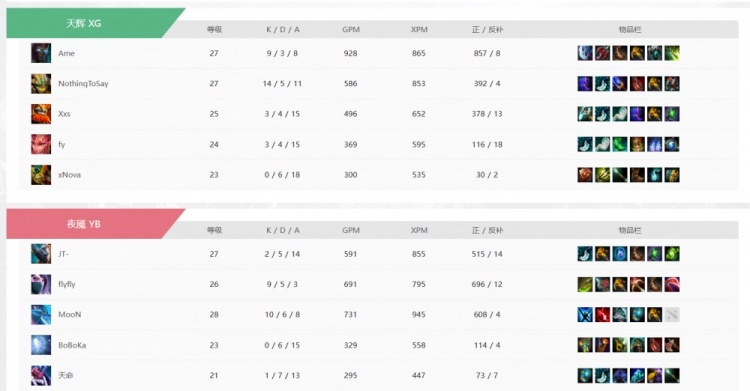 天辉XG:xNova上古巨神、Xxs玛尔斯、NothingToSay沙王、Fy邪影芳灵、Ame恐怖利刃