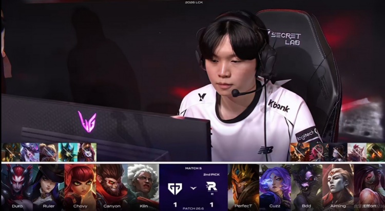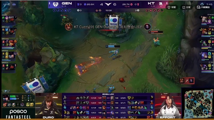 GEN:上单Kiin,打野Canyon,中路Chovy,下路Ruler,辅助Duro