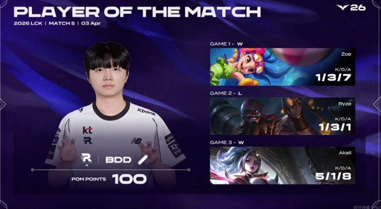 直播吧4月3日讯 2026年LCK第二赛段继续进行中!今天的首场比赛是GEN对阵KT!