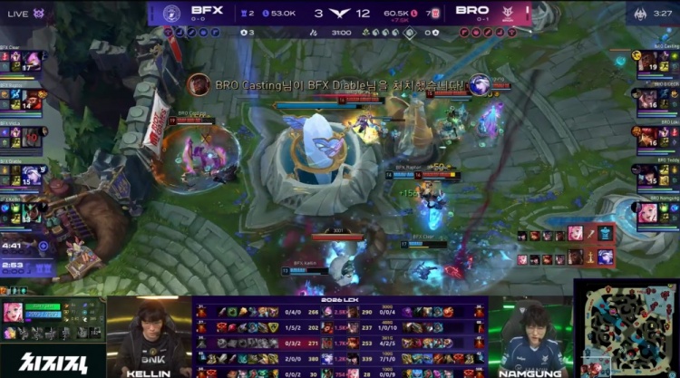 直播吧4月3日讯 LCK常规赛继续进行,今日第二场比赛BRO横扫BFX!
