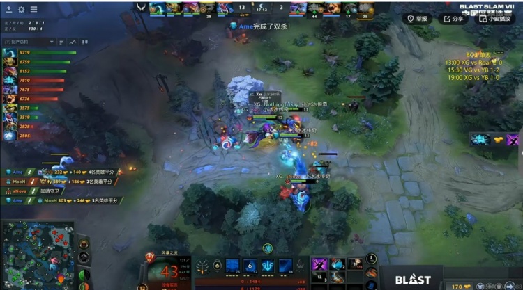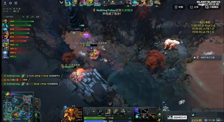 【19分钟】XG开打肉山,YB想来看,结果被獣举起的xNova萨尔开出了大招啊!Xxs滚滚开车搅乱阵型,XG一波0换4之后YB也不墨迹,直接敲出GG!这样XG以2-0击败YB,拿下Blast Slam S7中国区的唯一一个正赛名额!