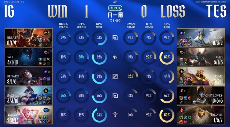 直播吧4月4日讯 2026LPL第二赛段常规赛组内赛今日开战,首场焦点之战由TES对阵iG!